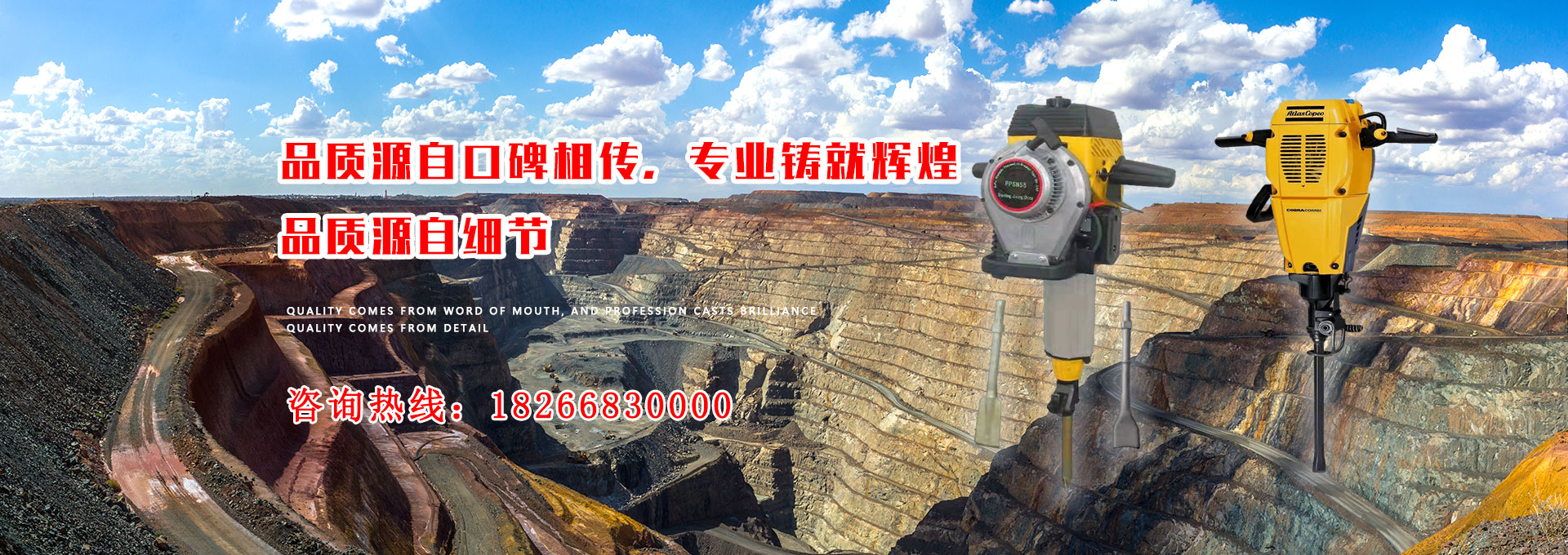 本公司是集開發(fā)、制造和銷售于一體的現(xiàn)代化公司,主要生產(chǎn)鑿巖機和破碎鎬,適用于礦山開采和施工作業(yè)